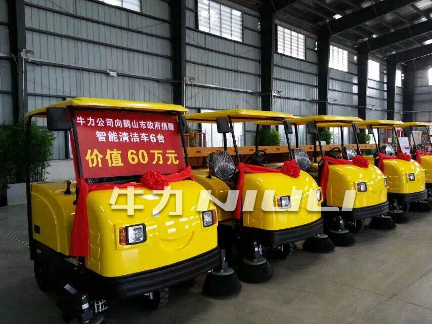 簽約儀式后,牛力機械向鶴山市捐贈6輛智能清潔車。