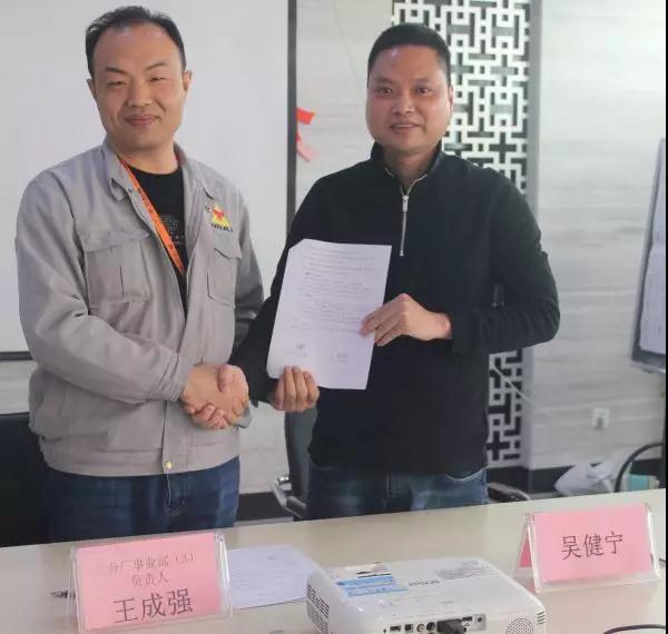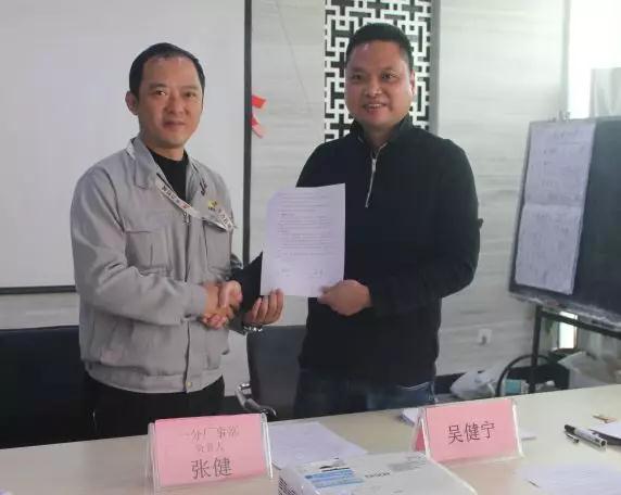 總經(jīng)理吳健寧與事業(yè)四部負責(zé)人王成強簽暑協(xié)議