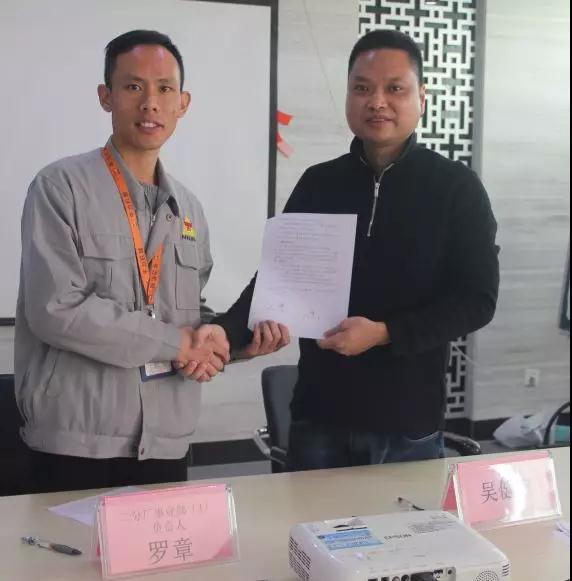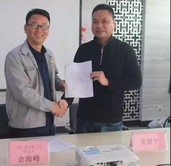 總經(jīng)理吳健寧與事業(yè)二部負責(zé)人楊遠簽暑協(xié)議
