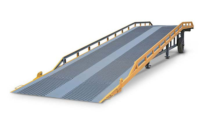 DCQY系列移動式登車橋適用于裝卸作業不固定的場合,叉車可以直接通過它從地面駛入貨車上進行裝卸作業,該產品具有高強度的焊接鋼構,表面鋪設防滑鐵網,使裝卸作業更安全、更快捷、更高效。